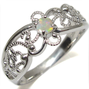 10月誕生石オパールを一粒使用したアンティークデザインの10金製リングです。