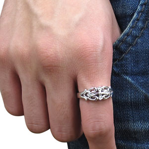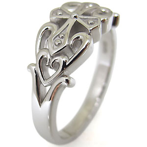 クロス&ハートデザインの18金製メンズリング(指輪)です。