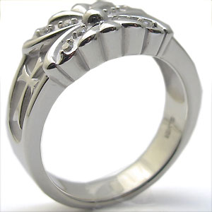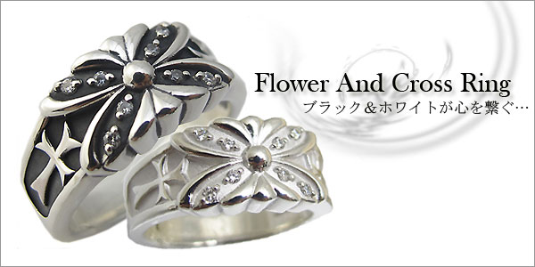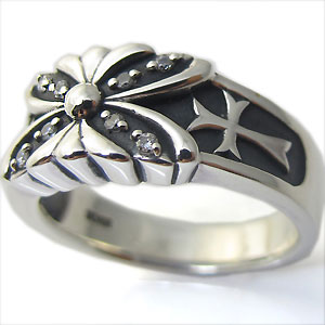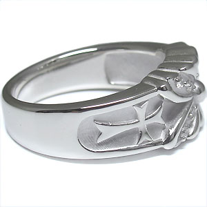 クロス&バタフライ(蝶)デザインのシルバー製ペアリングです。