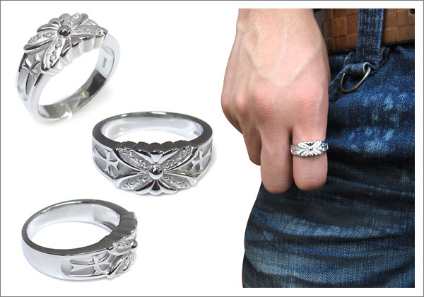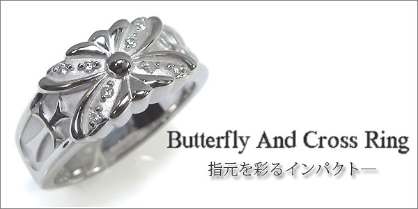 クロス&バタフライ(蝶)デザインの18金製リング(指輪)です。
