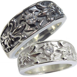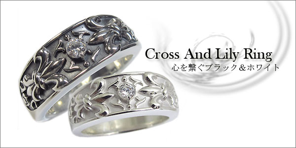 4月誕生石ダイヤモンドを一粒使用した、クロス&百合の紋章デザインのシルバー製ペアリングです。