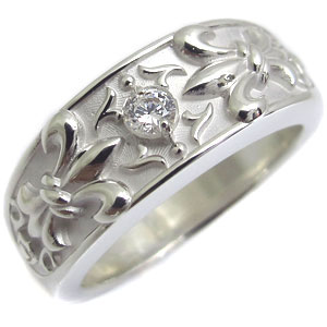4月誕生石ダイヤモンドを一粒使用したシルバー製、クロス&百合の紋章デザインのメンズリング(指輪)です。