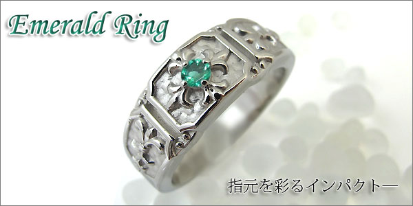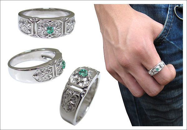 エメラルド・リング・18金・メンズ・クロス・百合の紋章・指輪
