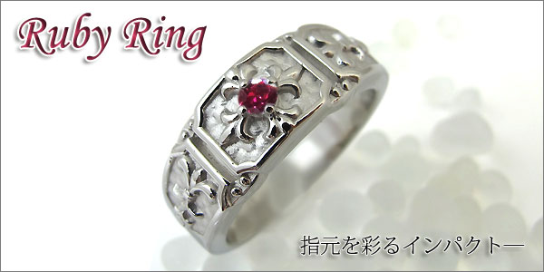 ルビーリング・クロス・メンズ・リング・百合の紋章・10金・指輪