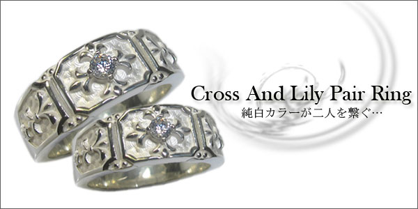 マリッジリング・シルバー・ダイヤモンド・リング・百合の紋章・クロス・指輪・ペアリング