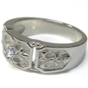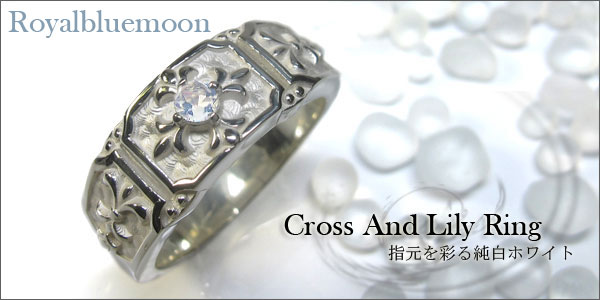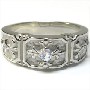 6月誕生石ロイヤルブルームーンストーンを一粒使用した、クロス&百合の紋章デザインのシルバー製メンズリング(指輪)です。