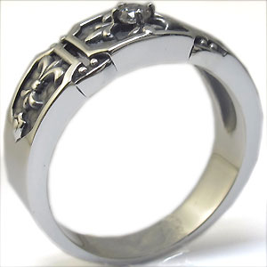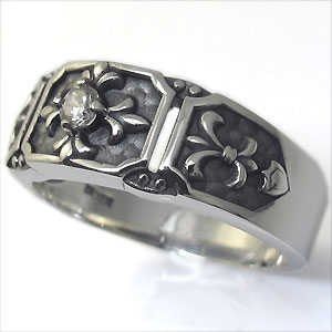 キュービックジルコニアを一粒使用した、クロス&百合の紋章デザインのシルバー製リングです。
