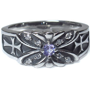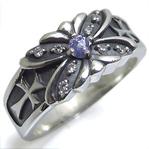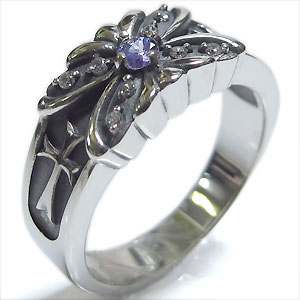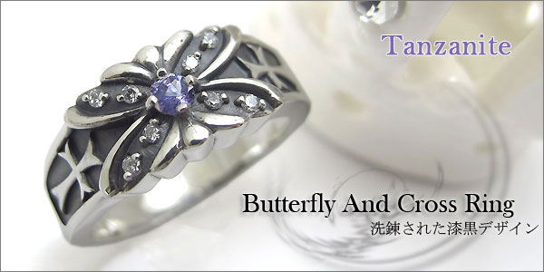 クロス・タンザナイト・リング・シルバー・メンズ・蝶・指輪