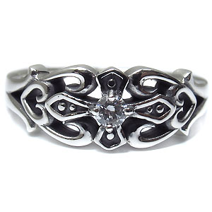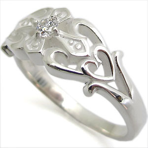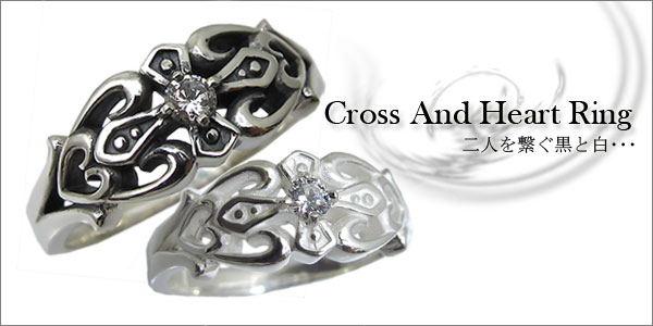 キュービックジルコニアを一粒使用した、クロス&ハートデザインのシルバー製ペアリングです。