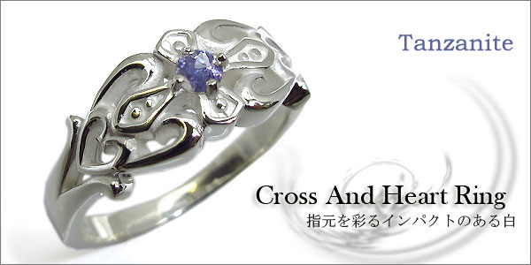 タンザナイト・リング・クロス・シルバー・メンズ・リング・ハート・指輪