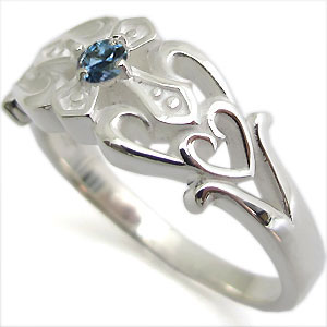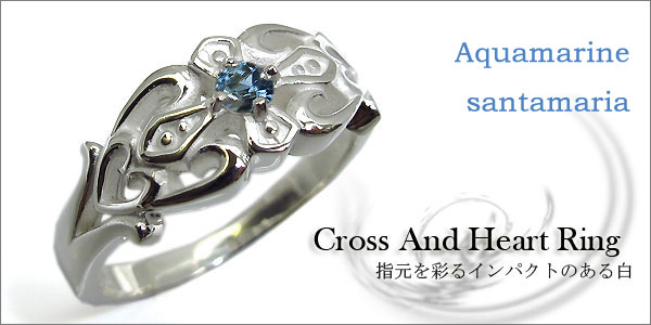 クロス・シルバー・メンズ・リング・ハート・アクアマリンサンタマリア・リング・指輪