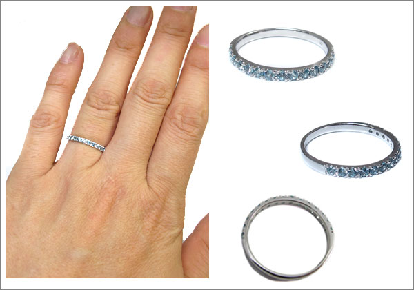 ブルージルコンを使用した18金製のハーフエタニティリング(指輪)です。