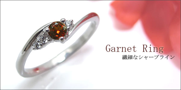 1月誕生石ガーネットを一粒使用したシンプルデザインの18金製リング(指輪)です。