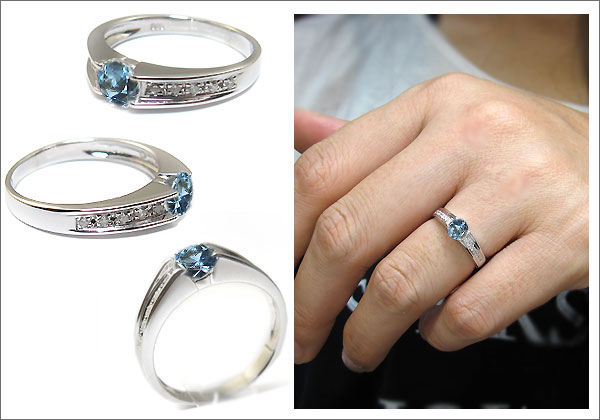 | ■石名 | 主石:アクアマリン(約 5.0mm/天然石使用) 脇石:ダイアモンド(合計10石で約 0.1ct/天然石使用) |