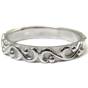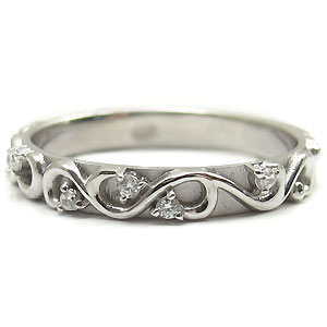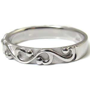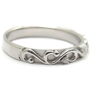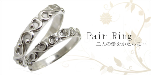 4月誕生石ダイヤモンドを使用した唐草デザイン・一文字タイプの10金製ペアリングです。