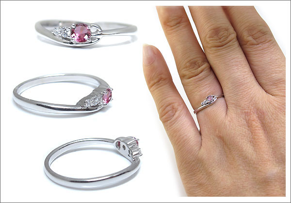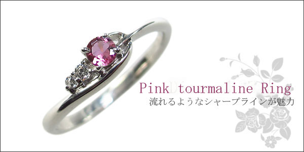 10月誕生石ピンクトルマリンを一粒使用したシンプルデザインのプラチナ製リングです。