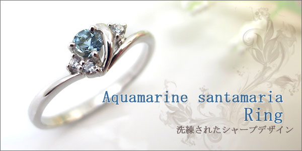 3月誕生石アクアマリンサンタマリアを一粒使用したシンプルデザインの10金製リング(指輪)です。