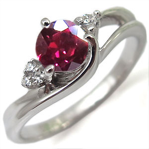 7月誕生石大粒ルビーを一粒使用したシンプルデザインのプラチナ製リングです。