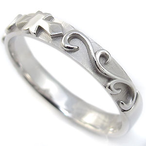 クロス・唐草デザイン一文字タイプの18金製ペアリングです。