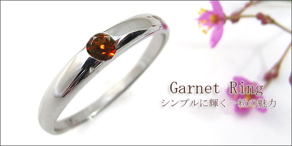 1月誕生石ガーネットを一粒使用したシンプルデザインの18金製リング(指輪)です。