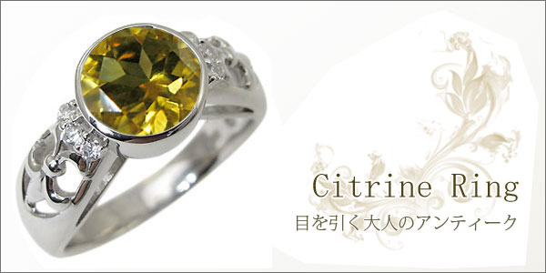 11月誕生石大粒シトリンを一粒使用したアンティークデザインの18金製リング(指輪)です。