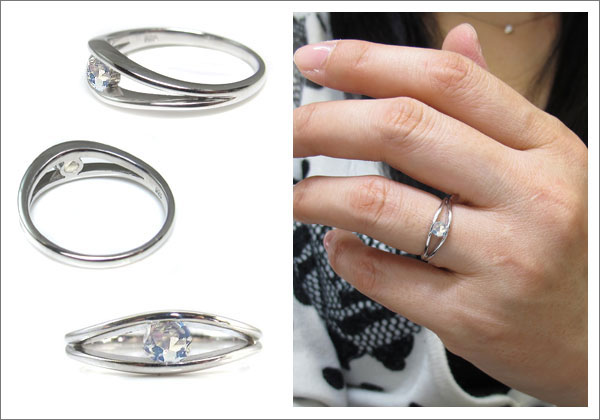 6月誕生石ロイヤルブルームーンストーンを一粒使用した、プラチナ製のシンプルデザインリング(指輪)です。