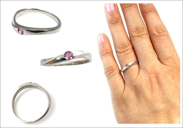 10月誕生石ピンクトルマリンを一粒使用したシンプルデザインのプラチナ製リング(指輪)です。