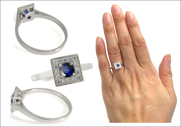プラチナ・指輪・サファイア・リング・一粒・スクエア・リング