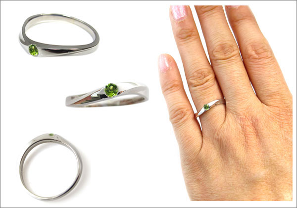 8月誕生石ペリドットを一粒使用したシンプルデザインの18金製リング(指輪)です。