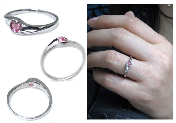 10月誕生石ピンクトルマリンを一粒使用した、プラチナ製のリング(指輪)です。
