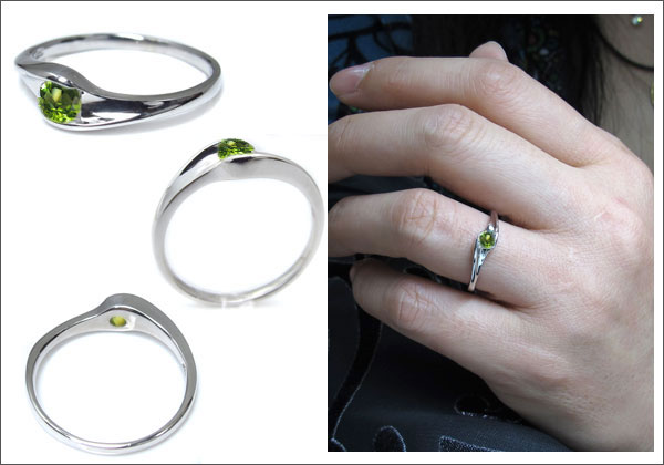 8月誕生石ペリドットを一粒使用した、10金製のリング(指輪)です。