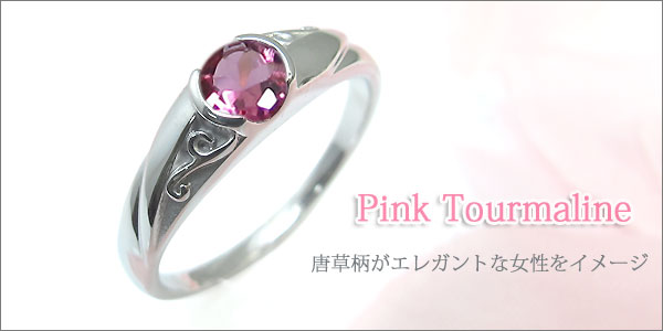 10月誕生石ピンクトルマリンを一粒使用した唐草(アラベスク)デザインの、18金製リング(指輪)です。