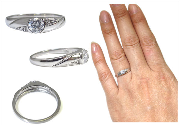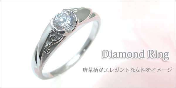 4月誕生石ダイヤモンドを一粒使用した唐草(アラベスク)デザインの、18金製リング(指輪)です。