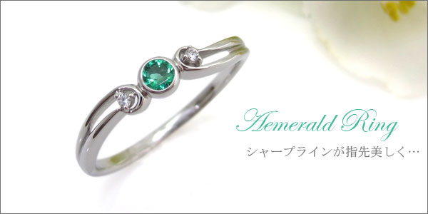 5月誕生石エメラルドを一粒使用した、プラチナ製のシンプルデザインリング(指輪)です。