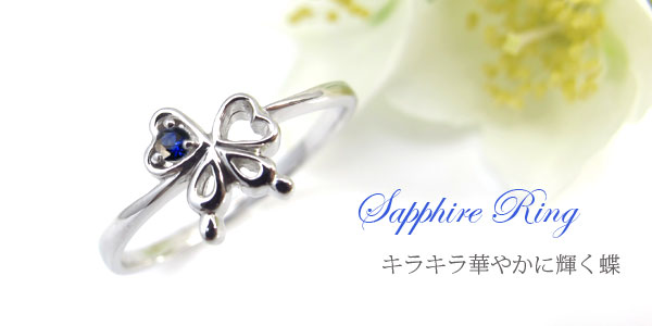 18金・指輪・一粒・リング・ハート・サファイア・蝶・リング