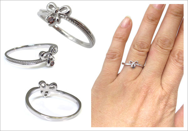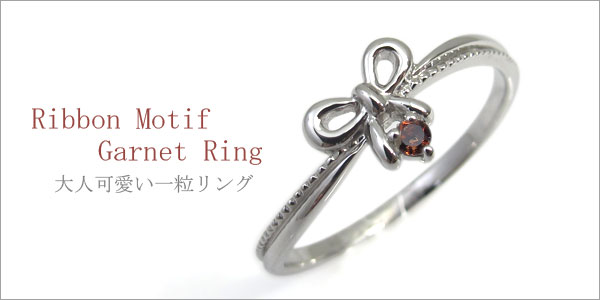 18金・指輪・一粒・ピンキーリング・リボン・ガーネット・リング