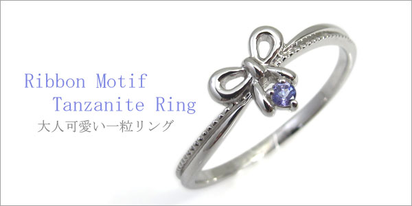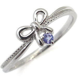 タンザナイト・ピンキーリング・リボン・10金・指輪・一粒・リング