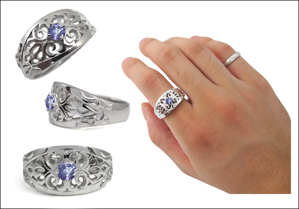 メンズ・リング・プラチナ・指輪・タンザナイト・ トライバル