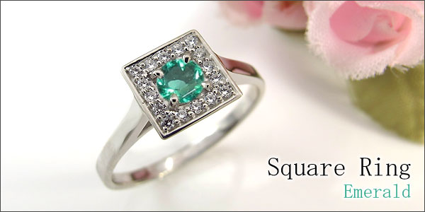 | プラチナ 指輪 エメラルド リング 一粒 スクエア リング | ||||||||||||||