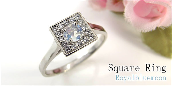 | プラチナ 指輪 ロイヤルブルームーンストーン リング 一粒 スクエア リング | ||||||||||||||