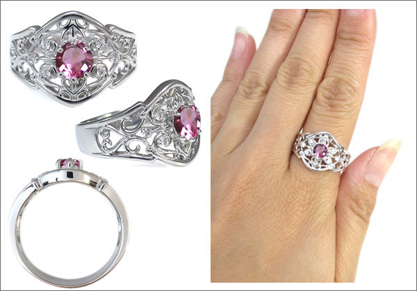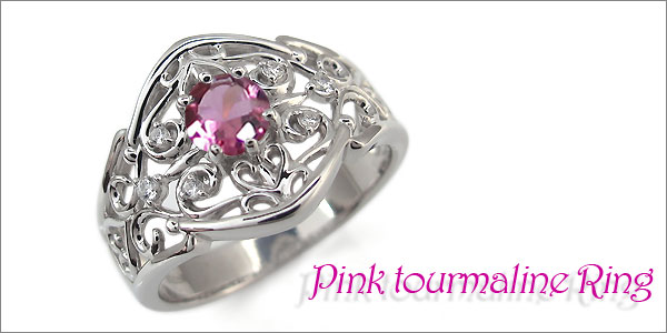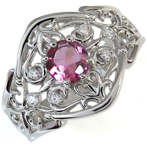 | 10月誕生石大粒ピンクトルマリンを一粒使用した、唐草デザインの10金製リング(指輪)です。 |