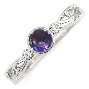 プラチナ・指輪・アメジスト・リング・一粒・唐草・リング