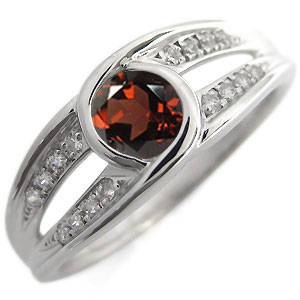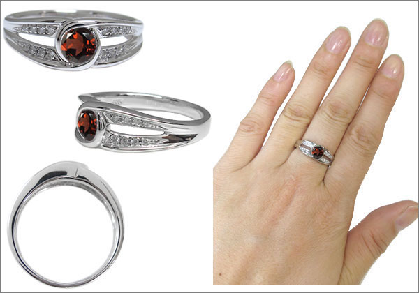 1月誕生石大粒ガーネットを一粒使用した、18金製のシンプルデザインリング(指輪)です。
