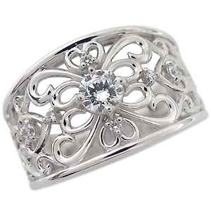 プラチナ リング 一粒 ダイヤモンド リング 指輪 唐草