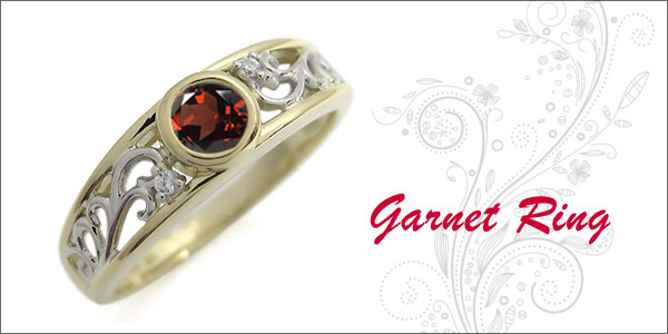 1月誕生石ガーネットを一粒使用した、18金とプラチナ製の唐草デザインコンビリング(指輪)です。 記念日や誕生日プレゼント、自分へのご褒美、クリスマスプレゼント、結婚記念日などの贈り物にお勧めです。 |