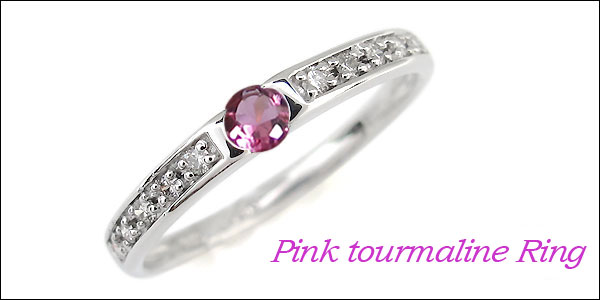 | 10月誕生石ピンクトルマリンを一粒使用した、18金製のハーフエタニティリング(指輪)です。 |