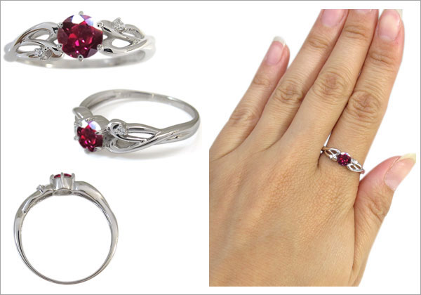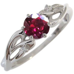 ルビー・指輪・一粒・リング・唐草・10金・リング