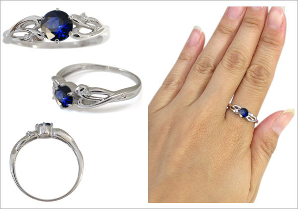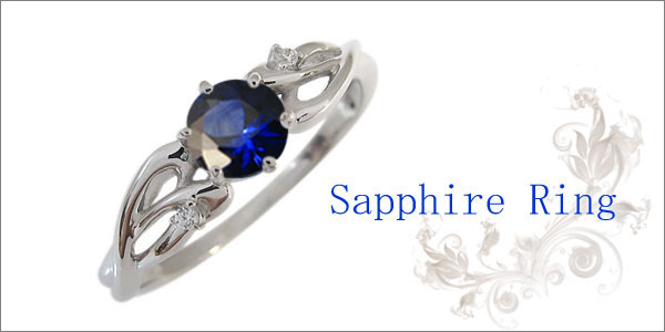 サファイア・指輪・一粒・リング・唐草・10金・リング