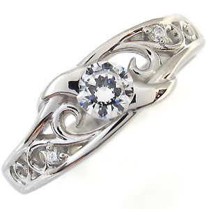 4月誕生石ダイヤモンドを一粒使用した、唐草デザインの18金製リング(指輪)です。 婚約指輪(エンゲージリング)や記念日、誕生日プレゼントなどの贈り物にお勧めです。 |