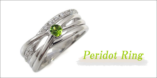8月誕生石ペリドットを一粒使用した、18金製のリング(指輪)です。